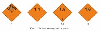 Знак опасности КЛАСС 1  "Взрывчатые вещества и изделия"