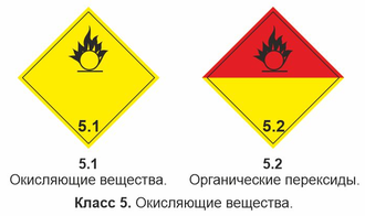 Знак опасности КЛАСС 5 "Окисляющие вещества и органические пероксиды"